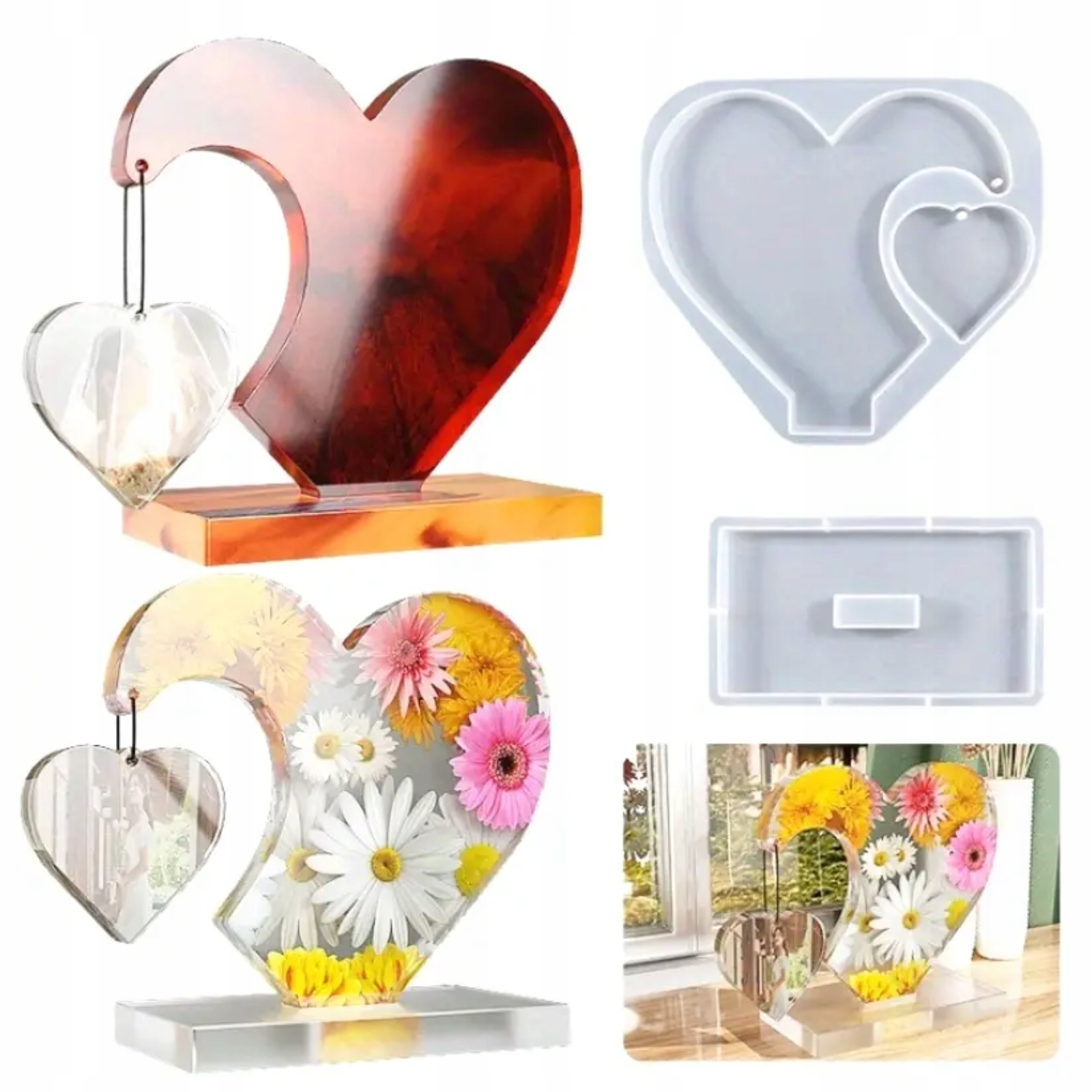 Силіконова форма для смоли - серце з сердечком | 3D-декорація з підставкою