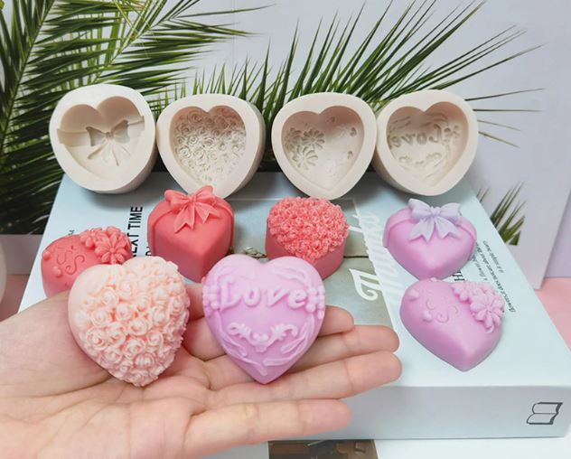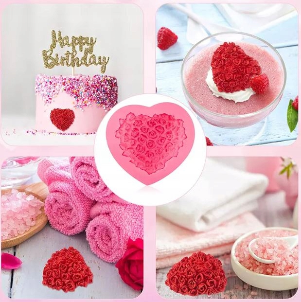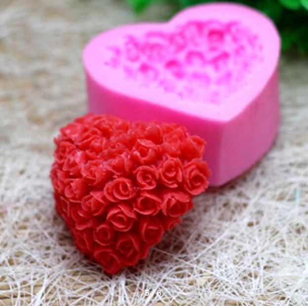 СИЛІКОНОВА ФОРМА ДЛЯ СВІЧОК ТРОЯНДИ СЕРЦЕ 3D 7см