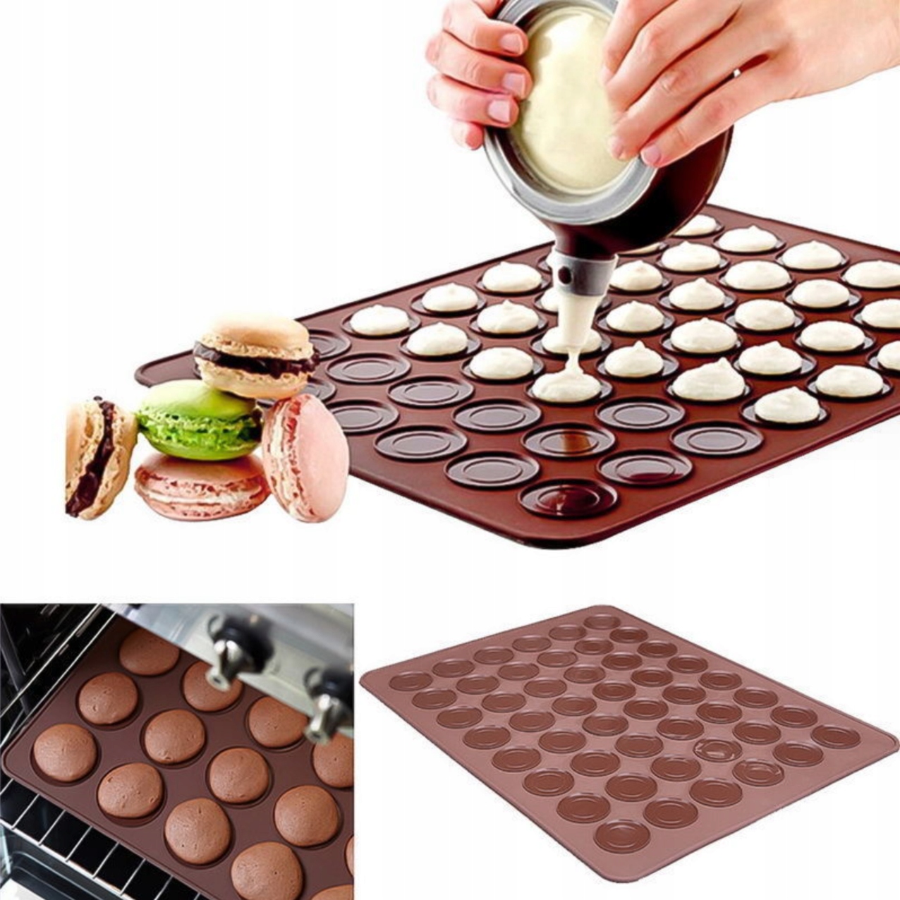 Силіконова форма для випічки макаронів печиво велике коричневе дозатор