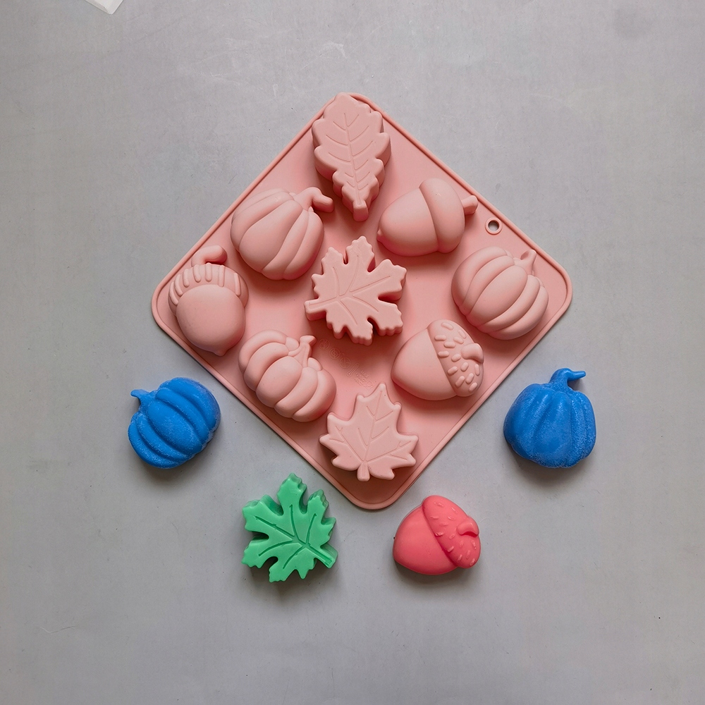 Силіконова форма МІКС осінніх візерунків, листя гарбуза, для виготовлення ароматичних восків для каміна чи мила
