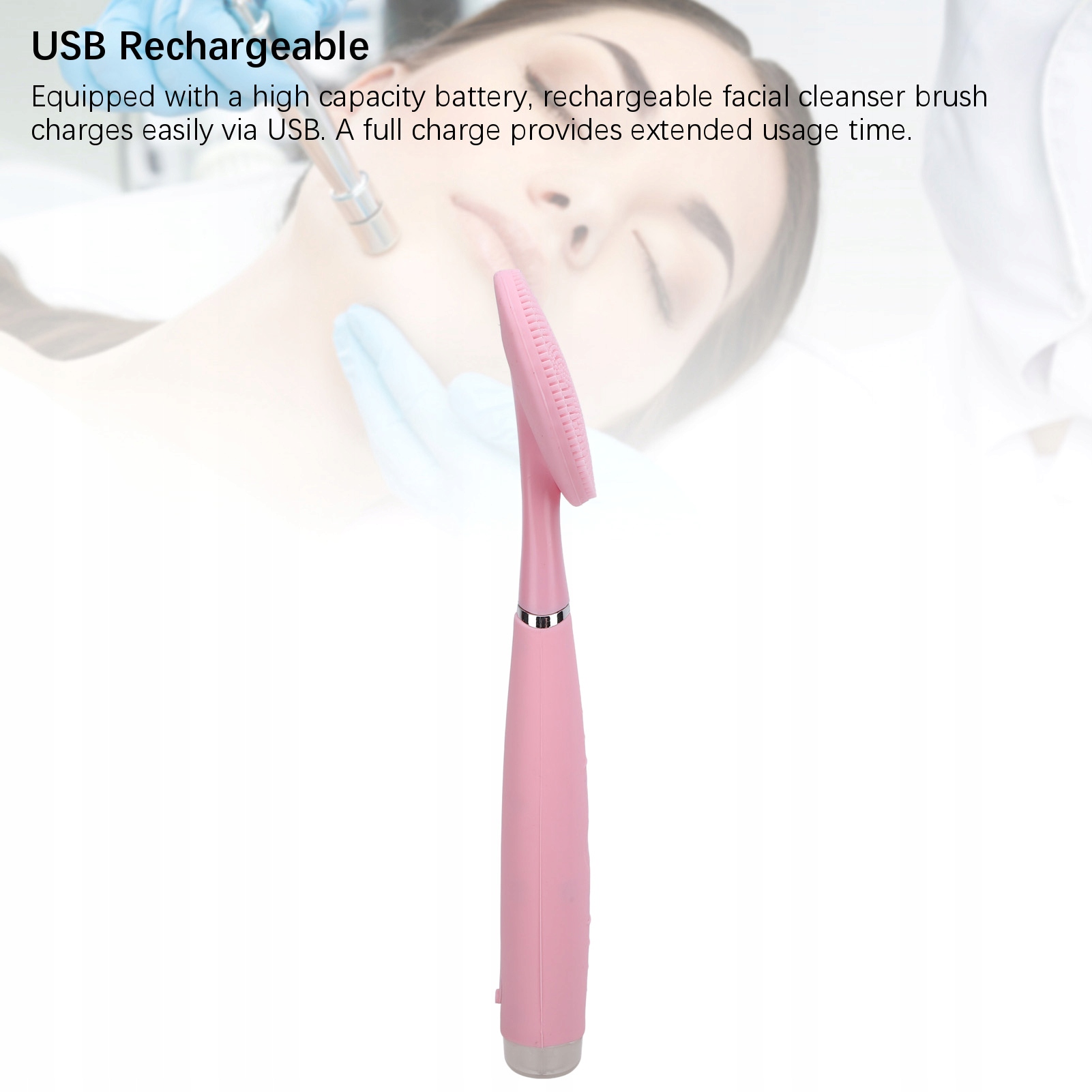4. USB: оснащений акумулятором великої ємності, зарядженим навантаженням на очищення обличчя легко через USB. Повний заряд забезпечує тривалий час використання.