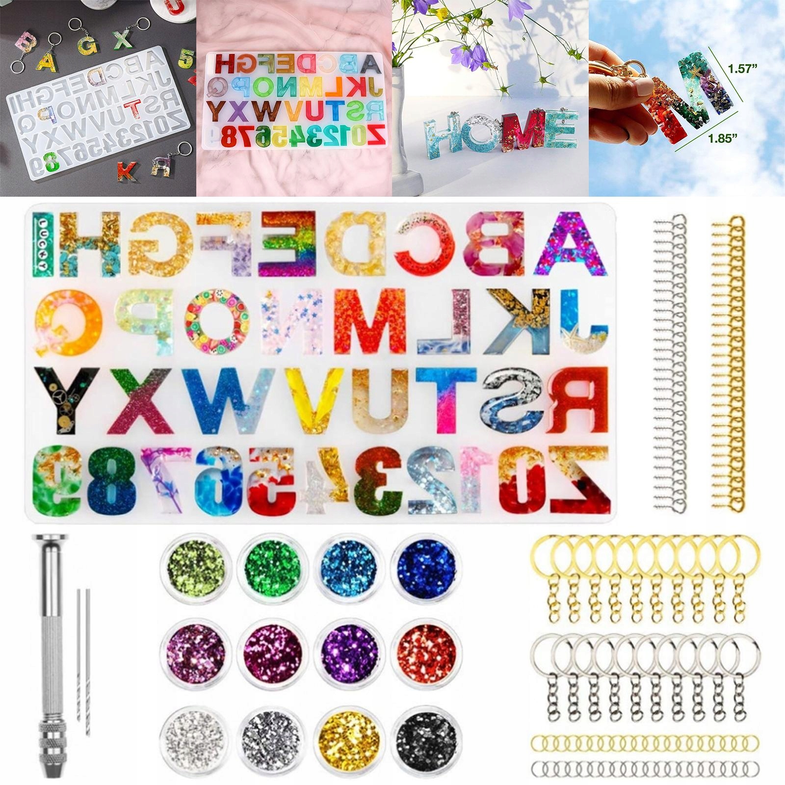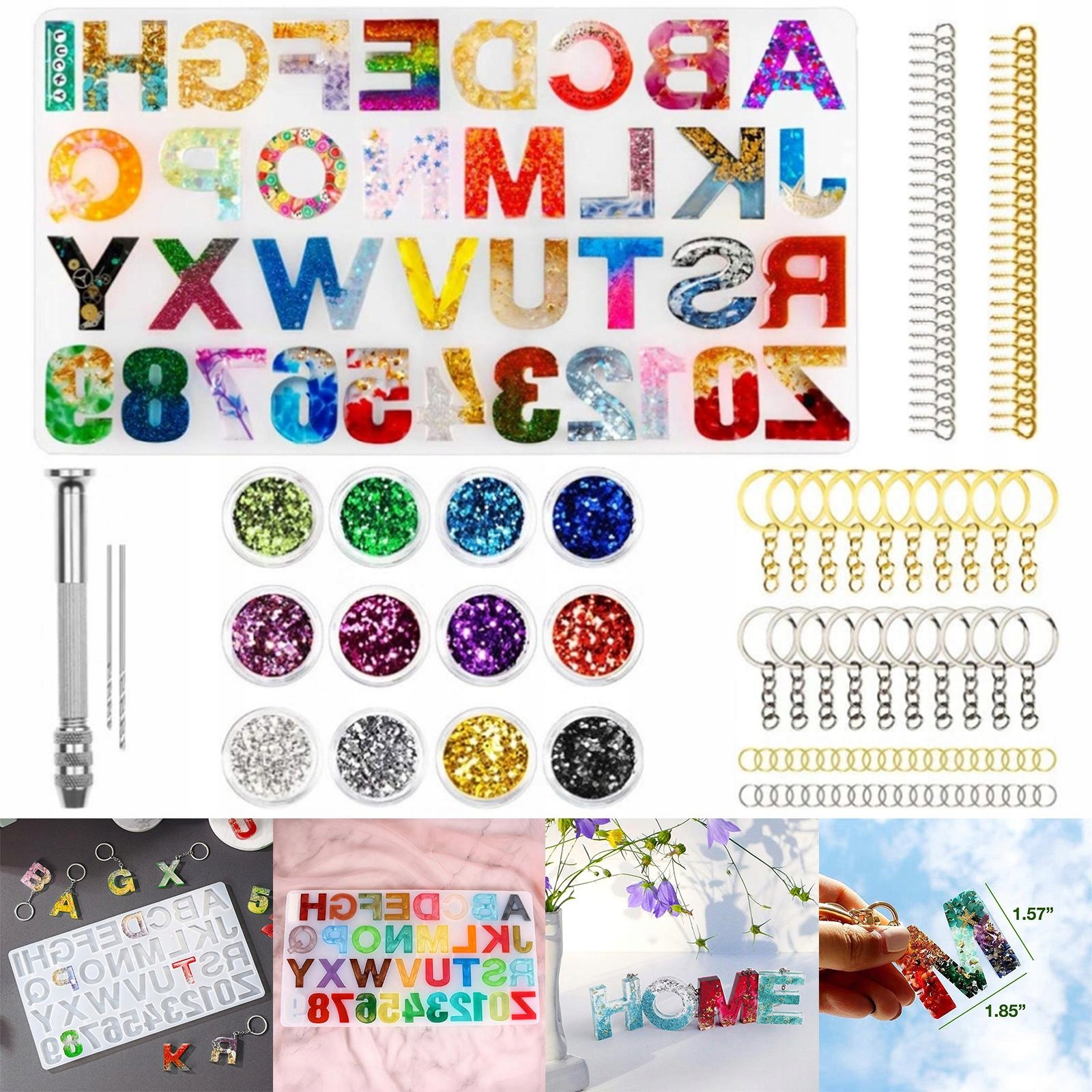 12-кольорові блискітки можна комбінувати, щоб створити улюблену прикрасу для ключів.