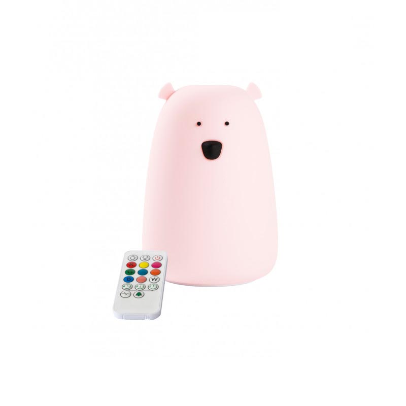 СИЛІКОНОВА ЛАМПА ДИТЯЧА L Рожевий плюшевий ведмедик + пульт Rabbit & Friends