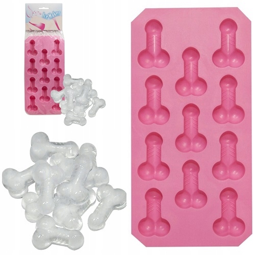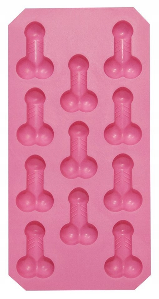 Рожева форма для льоду на 11 кубиків льоду у формі пеніса з яєчками.