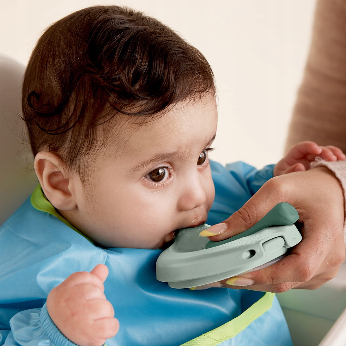 Оригінальна сплющена силіконова миска b.box – ідеальне рішення для подача малюкам пюре і мусів. Просто обережно стисніть гнучкий контейнер, і смачне пюре потрапить прямо в рот вашої дитини через практичний носик у кришці. Чаша призначена не тільки для пюре, а й для подачі йогурту, пудингу та багатьох інших напіврідких ласощів. У набір входить контрастний ковпачок мундштука, який не тільки зберігає його чистим, але й забезпечує ідеальне ущільнення. Широкий носик полегшує наповнення посудини, а кришка гарантує безпечне зберігання продуктів. Це рішення, яке дозволяє уникнути непотрібного безладу та підтримувати гігієну під час їжі. Гнучка Матеріал, з якого виготовлена миска, ідеально адаптується до маленьких ручок дитини і дозволяє йому їсти самостійно. Цей незамінний гаджет для подорожей складається та знімається, тому його легко чистити та зберігати.Тепер годувати мусами стало простіше та комфортніше як для вас, так і для вашої дитини.