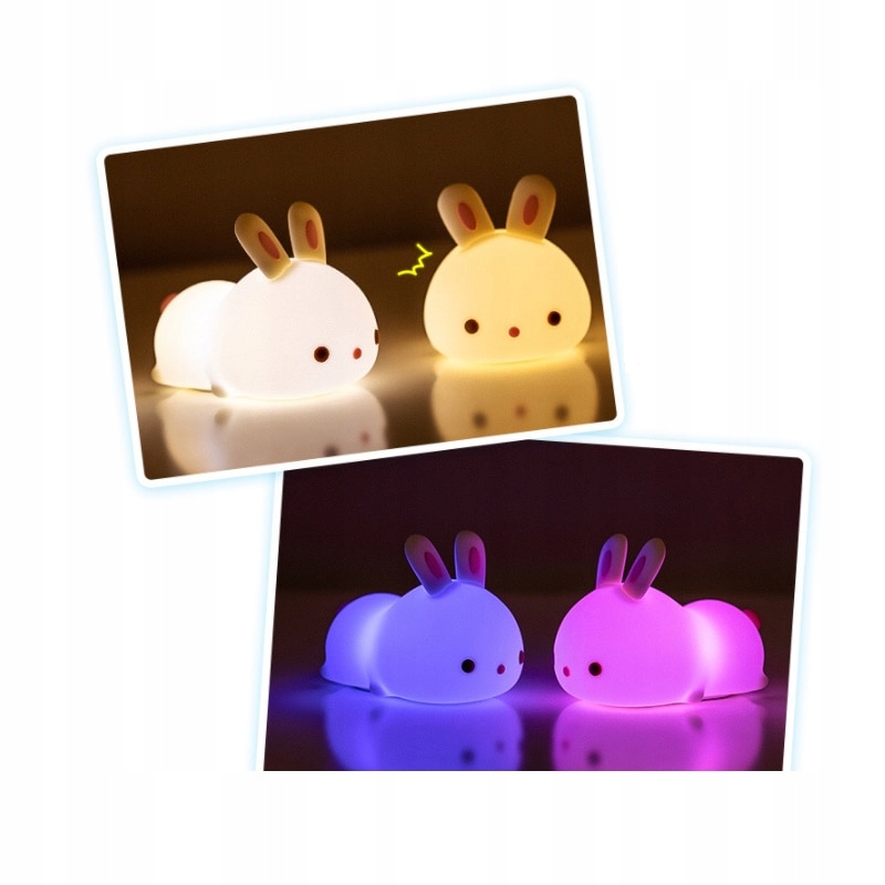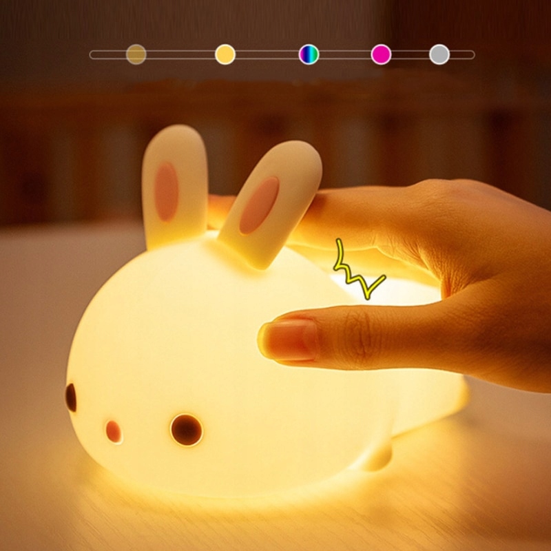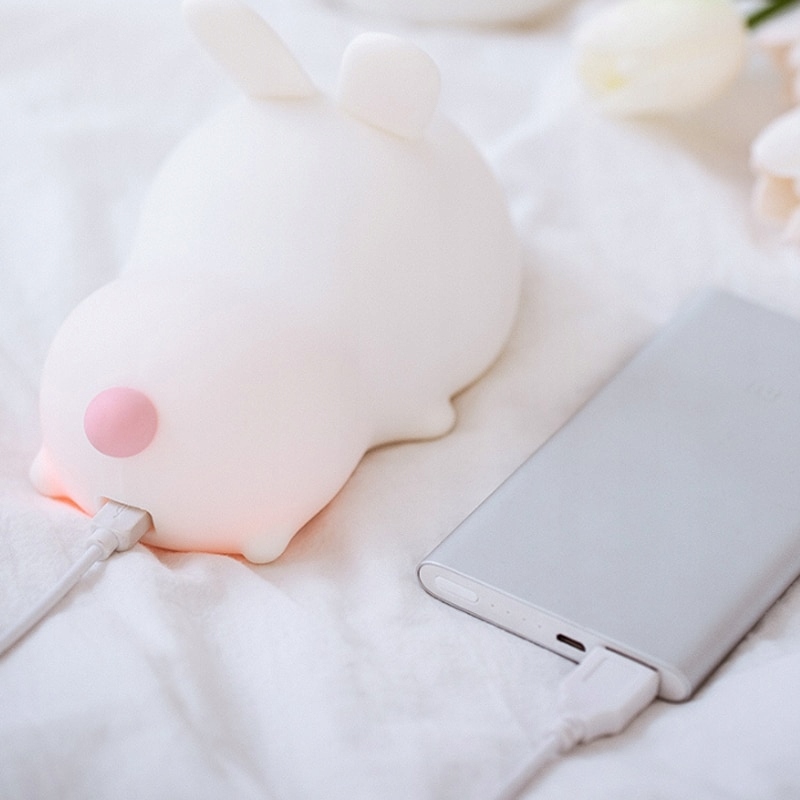Барвистий силіконовий кролик Портативний нічник М'який мультфільм Милі тварини Дитячий ліхтарик USB Зарядний пристрій Спальня Дитячий нічник