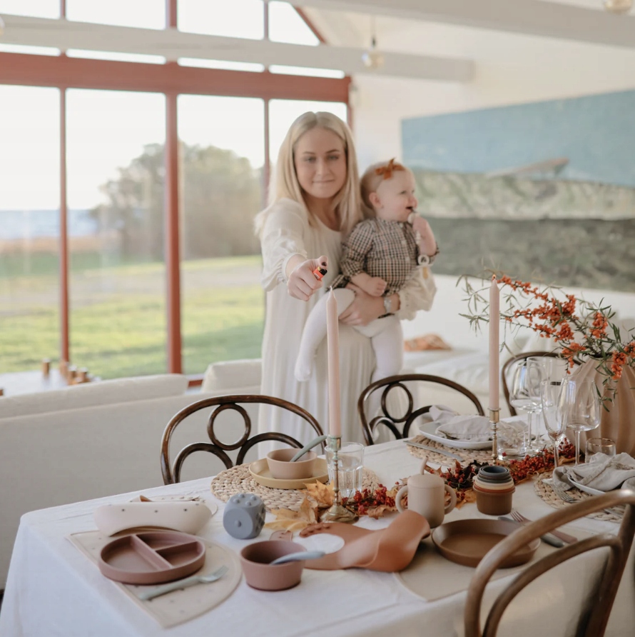 Важливим елементом посуду для початку самостійного навчання є барвистий килимок. Якщо ви хочете, щоб прибирання зони подачі їжі було легким і швидким, а класичний і елегантний дизайн відповідав вашому інтер’єру, серветка Mushie – те, що вам потрібно. Підкладка доступна в красивих природних кольорах, до яких ви легко підберете нагрудник Mushie та інший посуд.