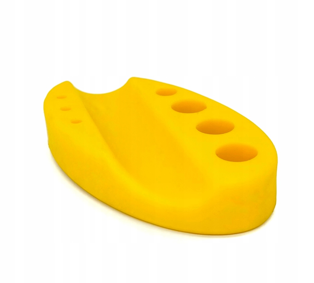Силіконова підставка для інструментів – дуже корисна річ для кожного майстра. Гнучкий і надійний, він дозволяє відкласти бритву під час перерви в роботі, повністю виключаючи контакт голки зі сторонніми предметами. Ковпачки з пігментами можна розмістити в поглибленнях на верхньому краю подушечки. Зручна підставка має виїмку для ручки тату-машини і спеціальні маленькі отвори для мікробрашів. Виготовлений з прогумованого матеріалу, який не ковзає по поверхні під час роботи.