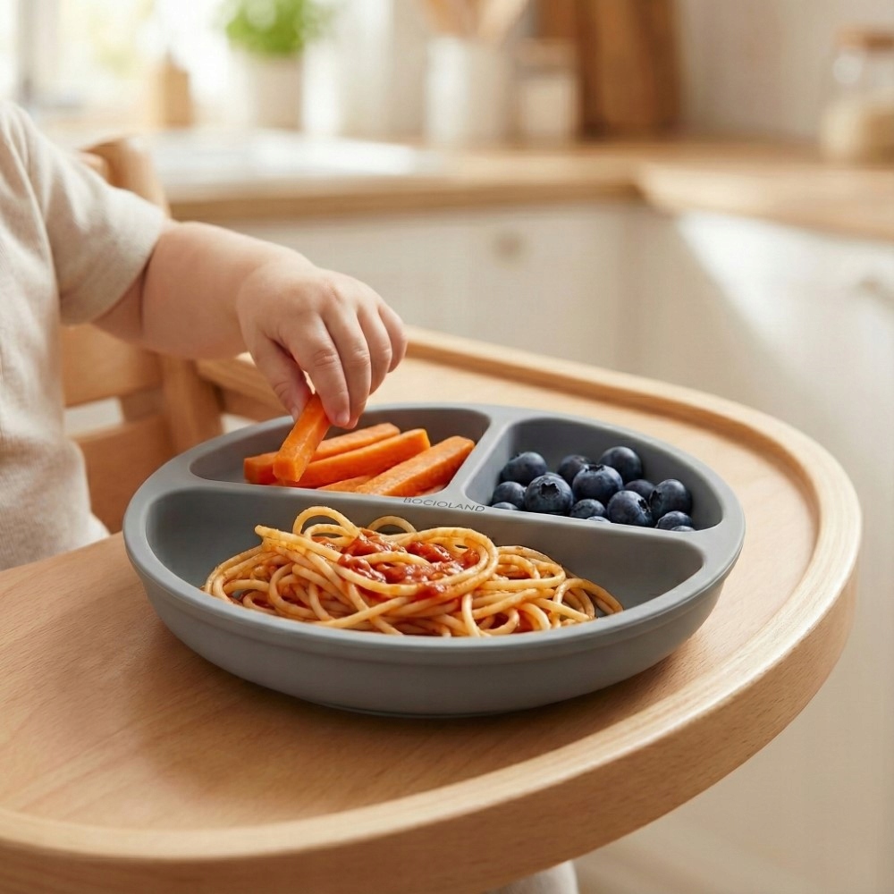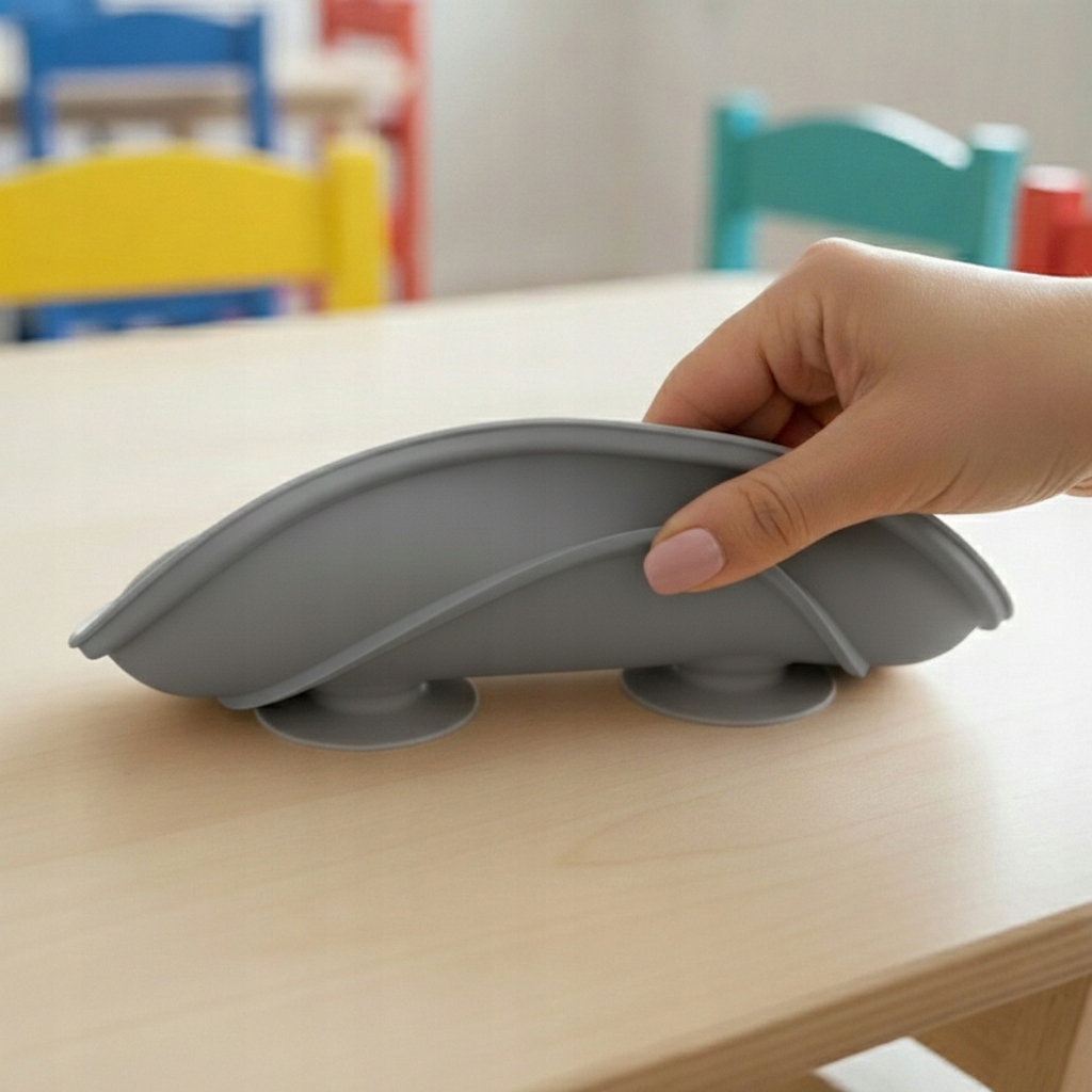 Перші самостійні прийоми їжі стають легшими завдяки тарілці з присосками - менше безладу, більше радості.