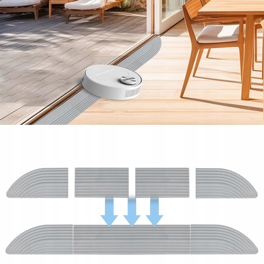 Порогова рампа робота-пилососа виготовлена з м'якого силікону, що забезпечує чудову продуктивність, легкість прибирання та стійкість до деформації. У складеному вигляді він має ширину 68,6 см, висоту 5,1 см і глибину 1,6 см.