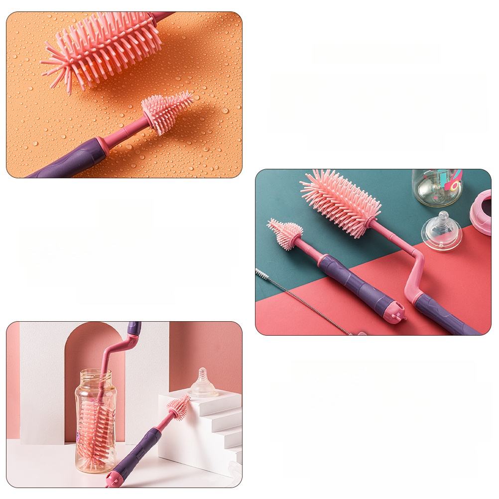 СИЛІКОНОВА ЩІТКА ДЛЯ ОЧИЩЕННЯ ДИТЯЧОЇ ПЛЯШЕЧКИ З МОЛОКОМ НАБІР ЗАСОБІВ ДЛЯ ОЧИЩЕННЯ ПЛЯШОК ВОДИ (РОЖЕВИЙ)