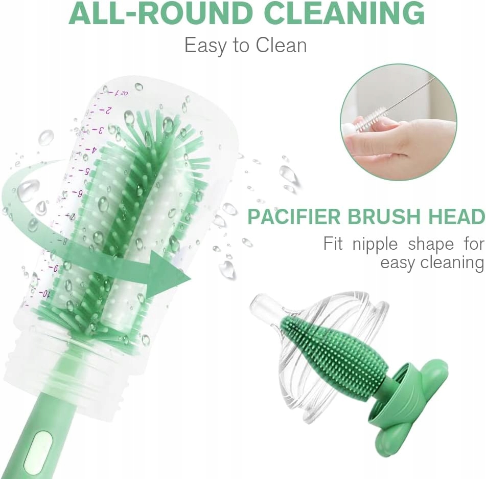 Універсальна кисть 3 -дюймової чистки, оснащена трьома різними порадами, ідеально підходить для очищення пляшок різної форми та розмірів. М'яка силіконова щетина не малює поверхонь і зберігає свою форму, що тривалий час гарантуючи довговічність та ефективність.