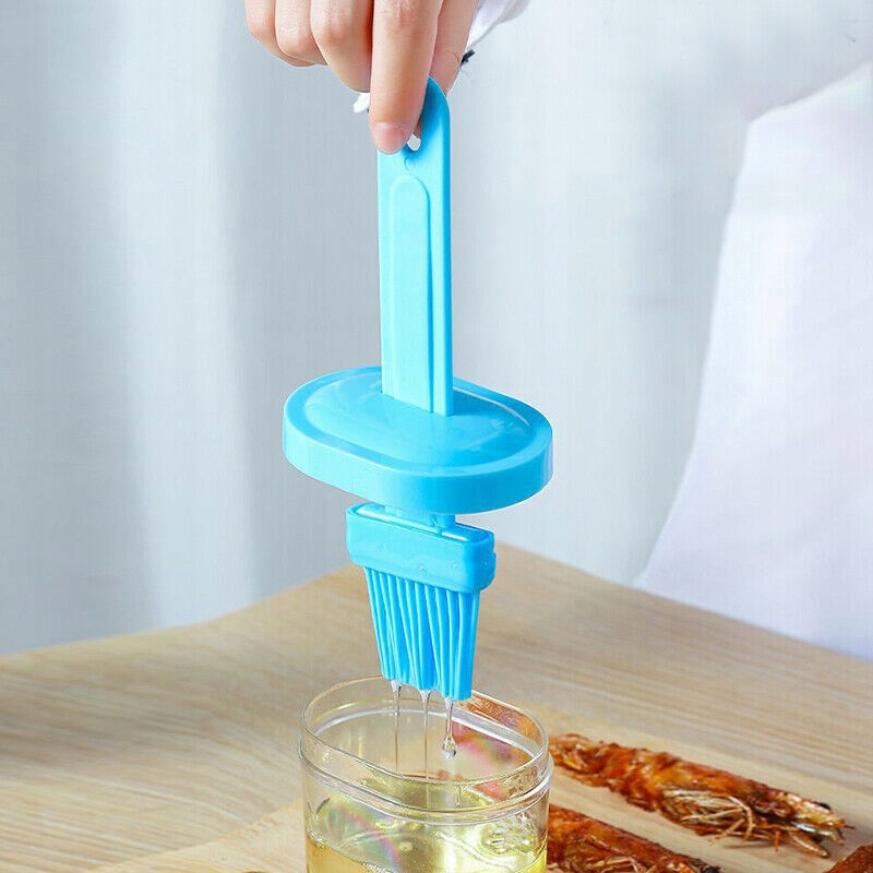 Кухонна щітка із силікону та пластику. Оснащений ємністю для олії або рідких спецій.