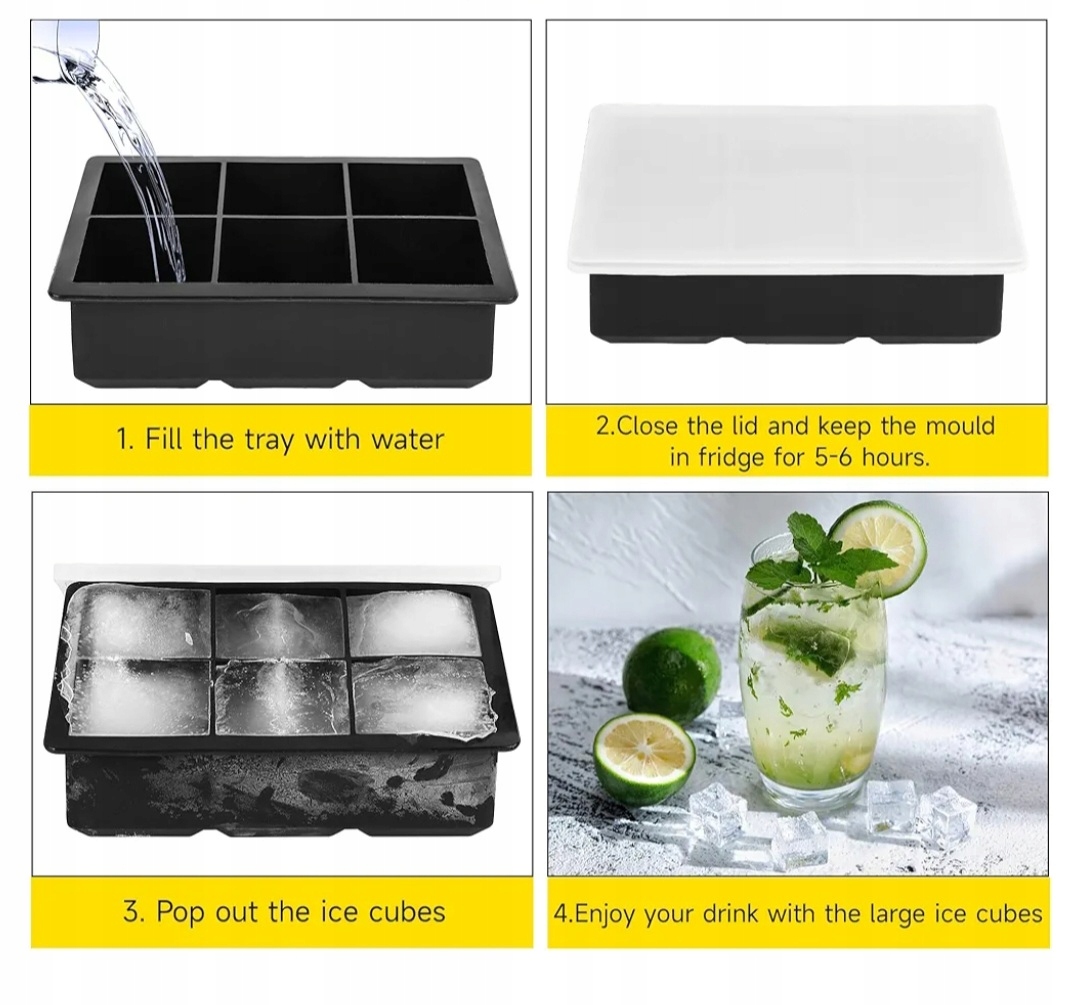 Великий кубик льоду: розмір великих кубиків льоду, виготовлених із цієї форми, становить 5 см x 5 см x 5 см. Більший кубик льоду може швидше охолоджувати напої та танути набагато повільніше.