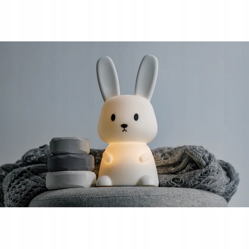 - М’який, гнучкий силікон без бісфенолу А, з якого виготовлено лампу, забезпечує безпечне використання навіть найменшими дітьми. Довгі вушка ідеально підходять для маленьких дітей, щоб тримати лампу. Однак змінювати кольори, доторкаючись до лампи рукою, - це чудове задоволення не тільки під час вечірнього ритуалу засипання. Дитина може роздавити лампу за бажанням, і через деякий час вона поверне свою форму.