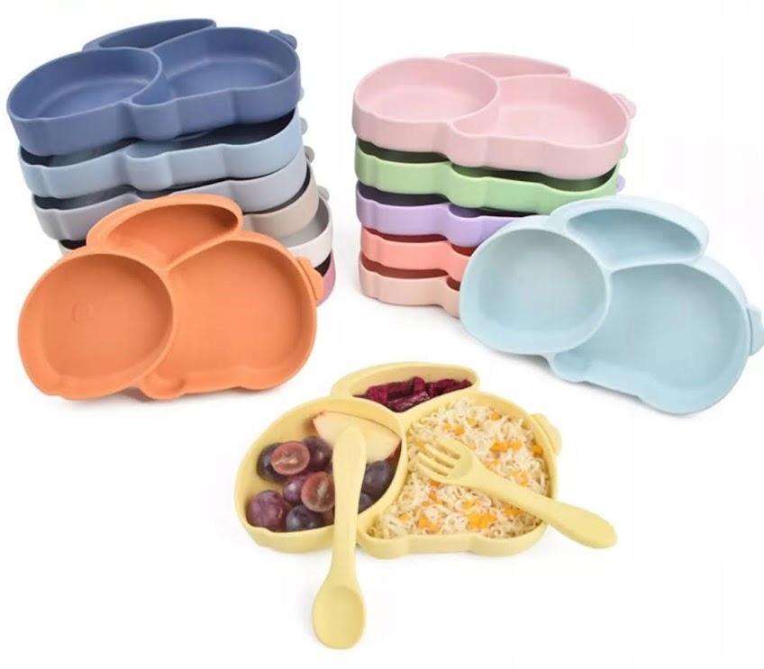 - цікавий ЗАЙЧИК візерунок і красиві, яскраві кольори. Завдяки цьому дитина охочіше їсть.