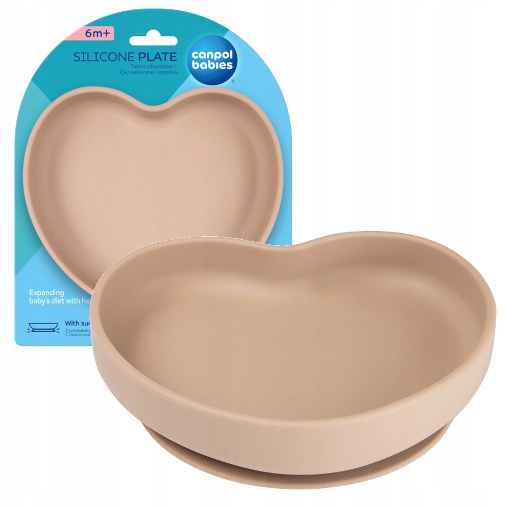 Силіконова тарілка з присоскою HEARTідеально підходить для перших прийомів їжі вашої дитини на початку його пригод із розширенням його раціону, включаючи метод BLW. Тарілка має протиковзку присоску знизу, що робить її стійкою і добре утримує стіл, що ускладнює її скидання. Тарілка має високі заокруглені краї, що полегшує дитині самостійно набирати їжу на вилку чи ложку. Він виготовлений з 100% високоякісного харчового силікону, що робить його безпечним для дитини. Не містить BPA, PVC, фталатів та інших шкідливих речовин. Його можна мити в посудомийній машині і розігрівати в мікрохвильовій печі. Силіконова тарілка Canpol babies із присоскою у формі серця — це чудова ідея, щоб гарно подати дитині та зробити їжу приємнішою.