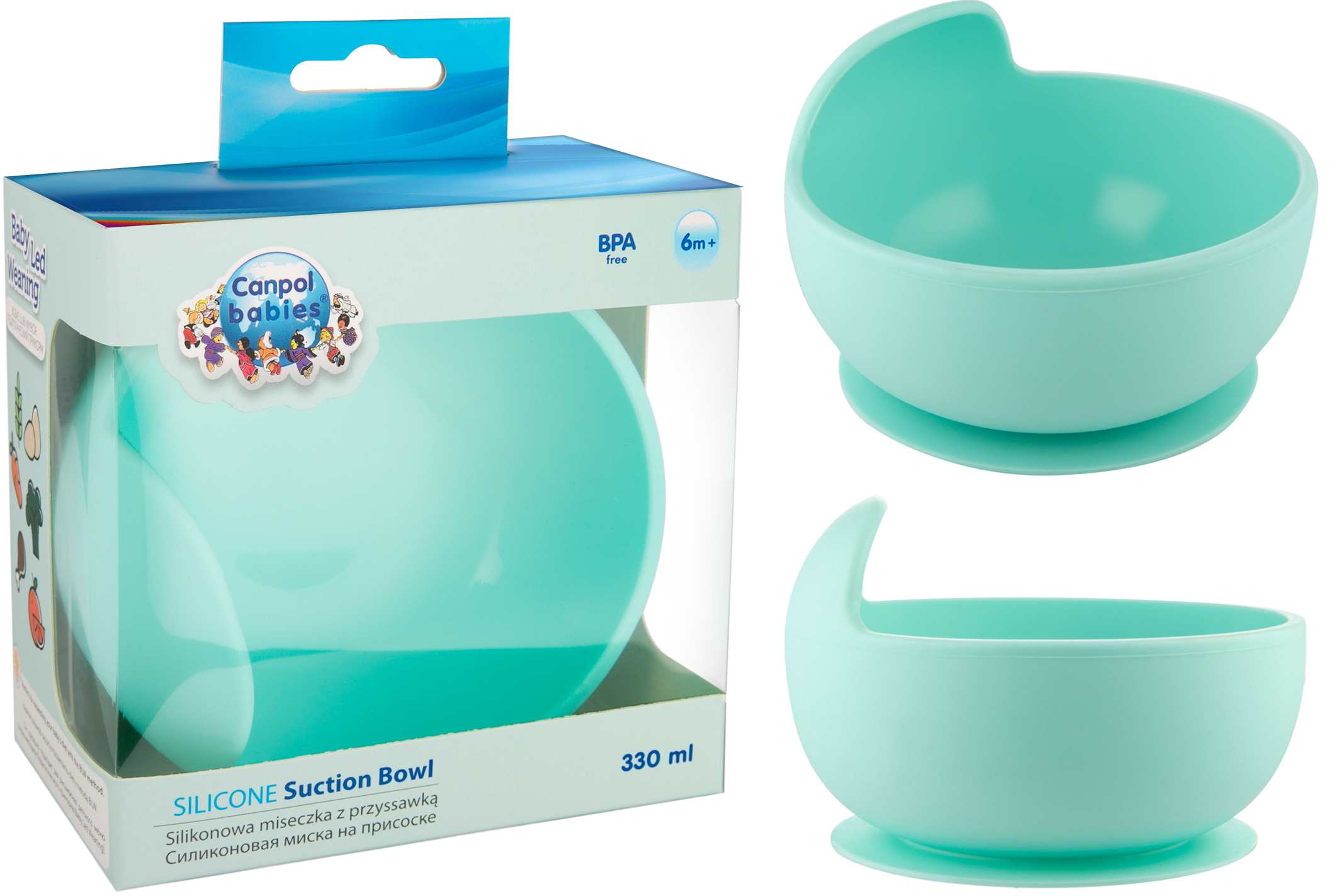 Це ідеальне рішення для перших прийомів їжі малюка, як самостійно, так і з допомогою батьків.Завдяки спеціальній присосці вона надійно прилягає до землі та запобігає випадковому збиванню зі столу чи стільчика для годування .