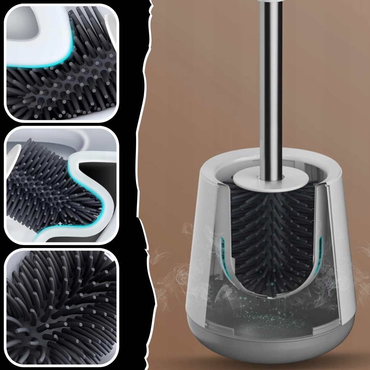 Кругла головка пензля дозволяє дістатися до поглиблень туалету, включаючи під краю оболонки, ефективно видаючи бруд, недоступний для традиційних пензлів.