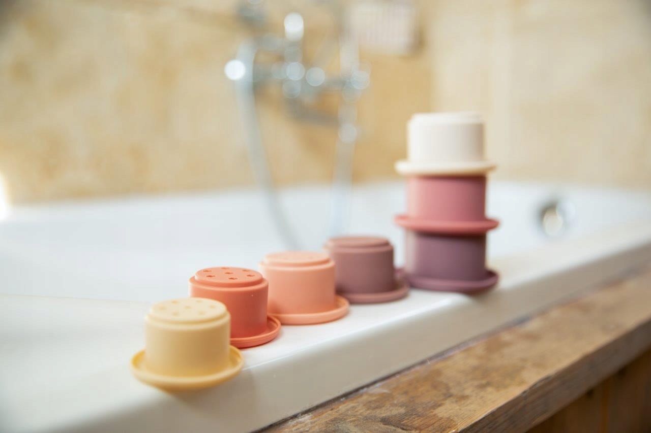 Можна використовувати як форми для виготовлення пісочних тортів. Під час гри діти досліджують, як поєднуються різні форми та розміри, і використовують свою уяву. Маленькі отвори на дні чашок роблять їх ідеальними для ігор з водою у ванні, завдяки чому ваша дитина може викликати дощ під час купання.