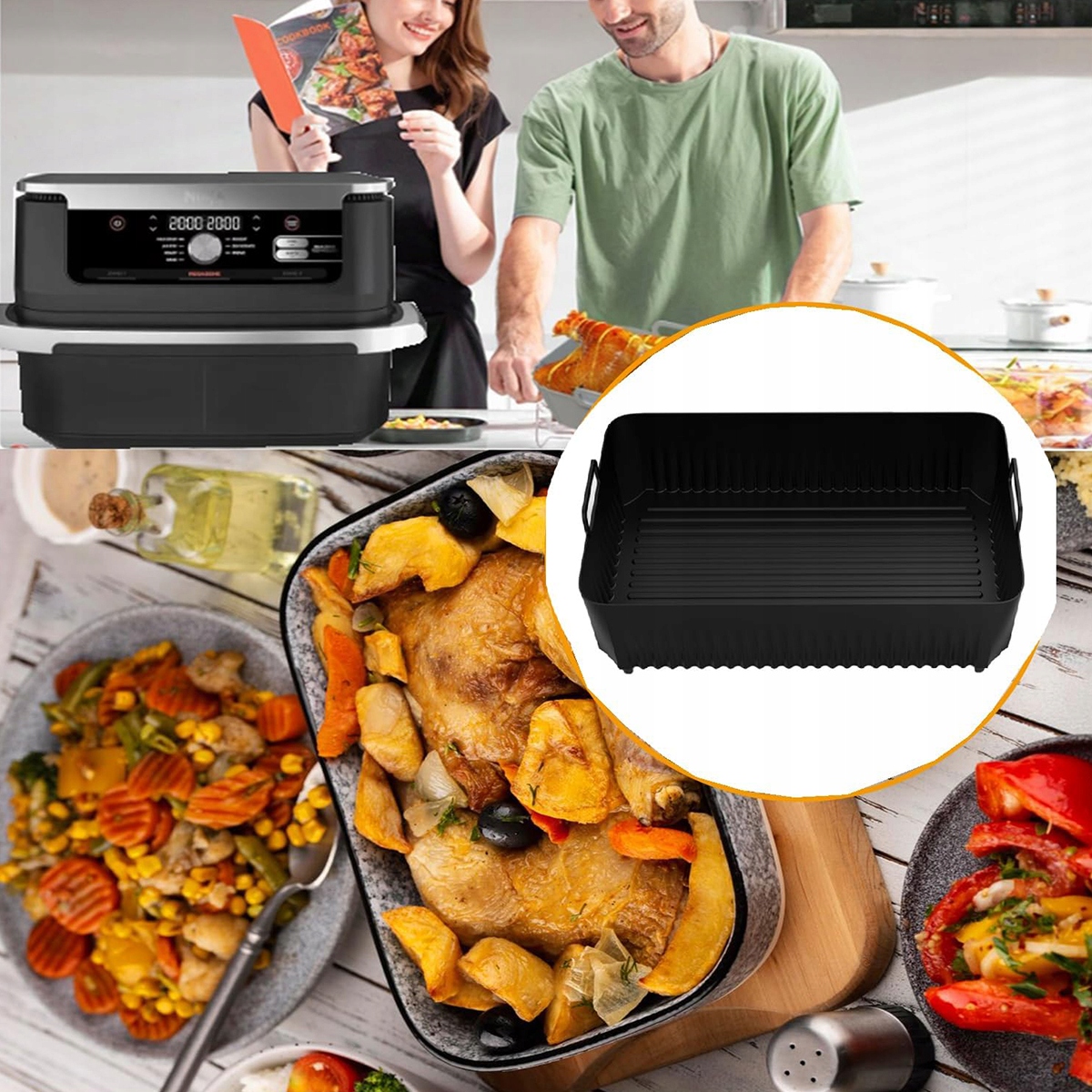 Кухонні гаджети: У вас все ще виникають проблеми з плямами, які залишає кошик фритюрниці після кожного використання? Наші силіконові вставки можуть повністю вирішити цю проблему. Вони мають такі переваги, як відмінна сумісність, стійкість до високих температур, стійкість до розриву, нетоксичність і відсутність запаху. Спеціально розроблено для Ninja AF500EU.