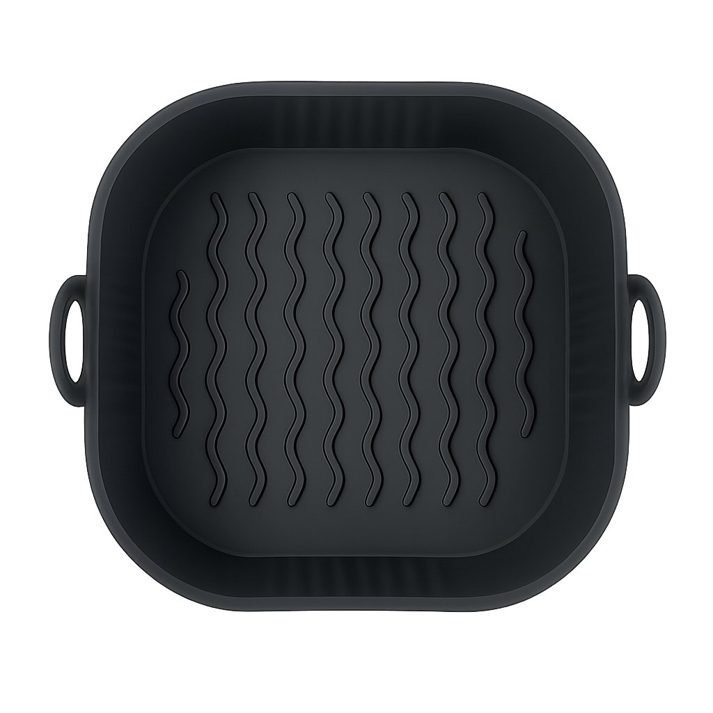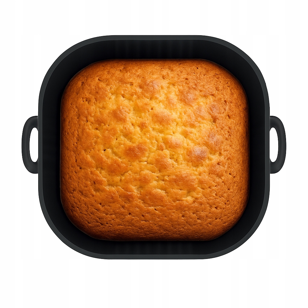 Повторне використання, гнучка силіконова форма ідеально підходить для кожного нежирного фритюрниці. Завдяки гофрованому дно з канавками, гаряче повітря вільно циркулює, що забезпечує навіть випічку посуду без спалювання. Практичні ручки полегшують безпечне видалення.