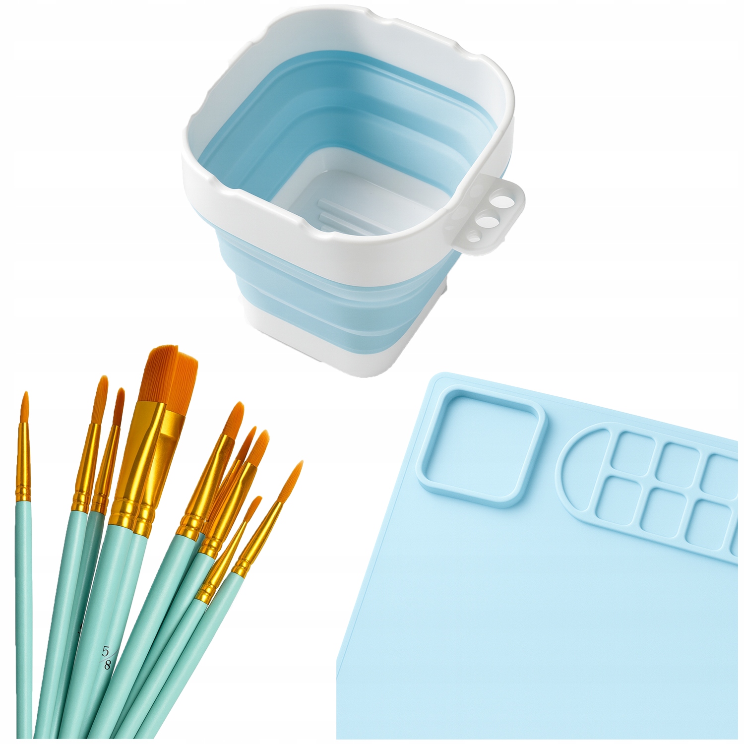 ➡️ У набір входить: силіконовий килимок, складна чашка, 10 пензликів