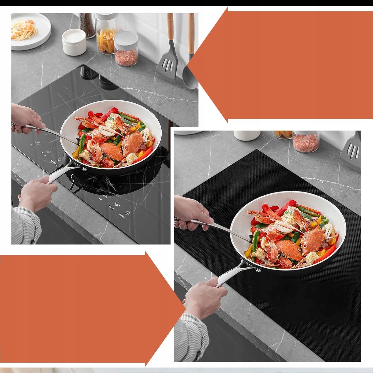 2 [ЗАХИСТИТЬ ПОСУД]Килимок захищає індукційну плиту від плям і подряпин, як а також бризки, подряпини, жир та інші поверхні на кухонних стільницях та інших поверхнях. Килимок багаторазового використання, вогнестійкий і термостійкий.