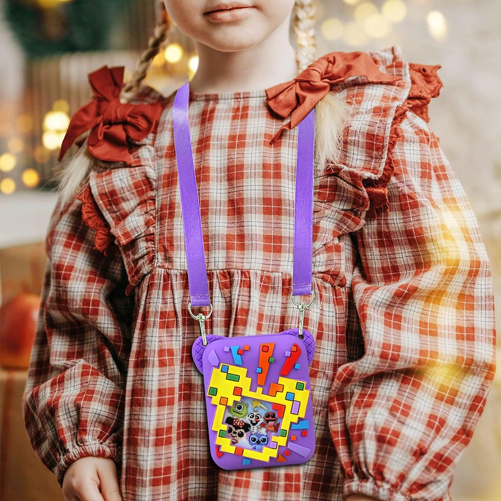 🟣 【2 Стилі】: Bitzee Magicals пропонує дві продукти: один -сайт і розділений. Силіконовий корпус простий у встановленні та розібранні та має знімну петлю з гачком, щоб користувачі могли повісити консоль на зап'ясті, рюкзак або в іншому зручному місці.