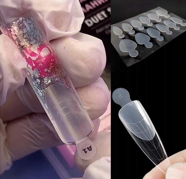 ➡️ Приклейте силіконову форму до подвійної форми, потім заповніть порожній простір вибраними французькими засобами для укладання та висушіть у лампі.