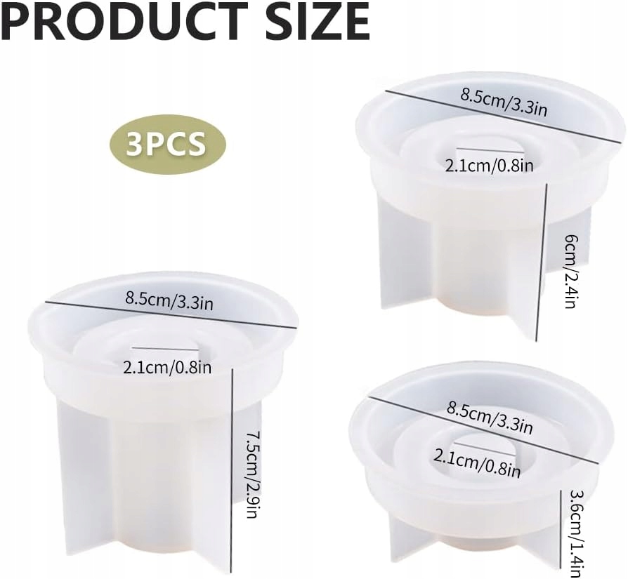 Вміст упаковки: Цей набір силіконових форм постачається з 3 формочками для свічників різних розмірів. Використовуйте ці форми з епоксидної смоли, щоб створювати вироби своїми руками.