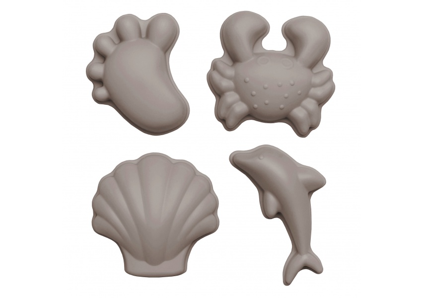 У нас є для вас чудове рішення... Силіконові форми Scrunch ідеально підходять для ігор у піску, воді, під час купання у ванні. Вони не займають багато місця в сумці чи валізі. У набір входять чотири м'які форми у формі краба, дельфіна, черепашки та ніжки дитини, все це упаковано в сіточку зі шнурком.