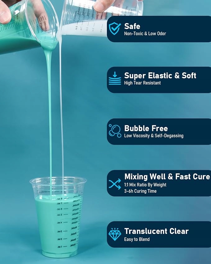 Накласний набір для виробництва силіконових форм, високоякісної платинової рідкої силіконової гуми для безпечного та гнучкого лиття, живого нефритового зеленого кольору, комфортних корпусів та чашок для