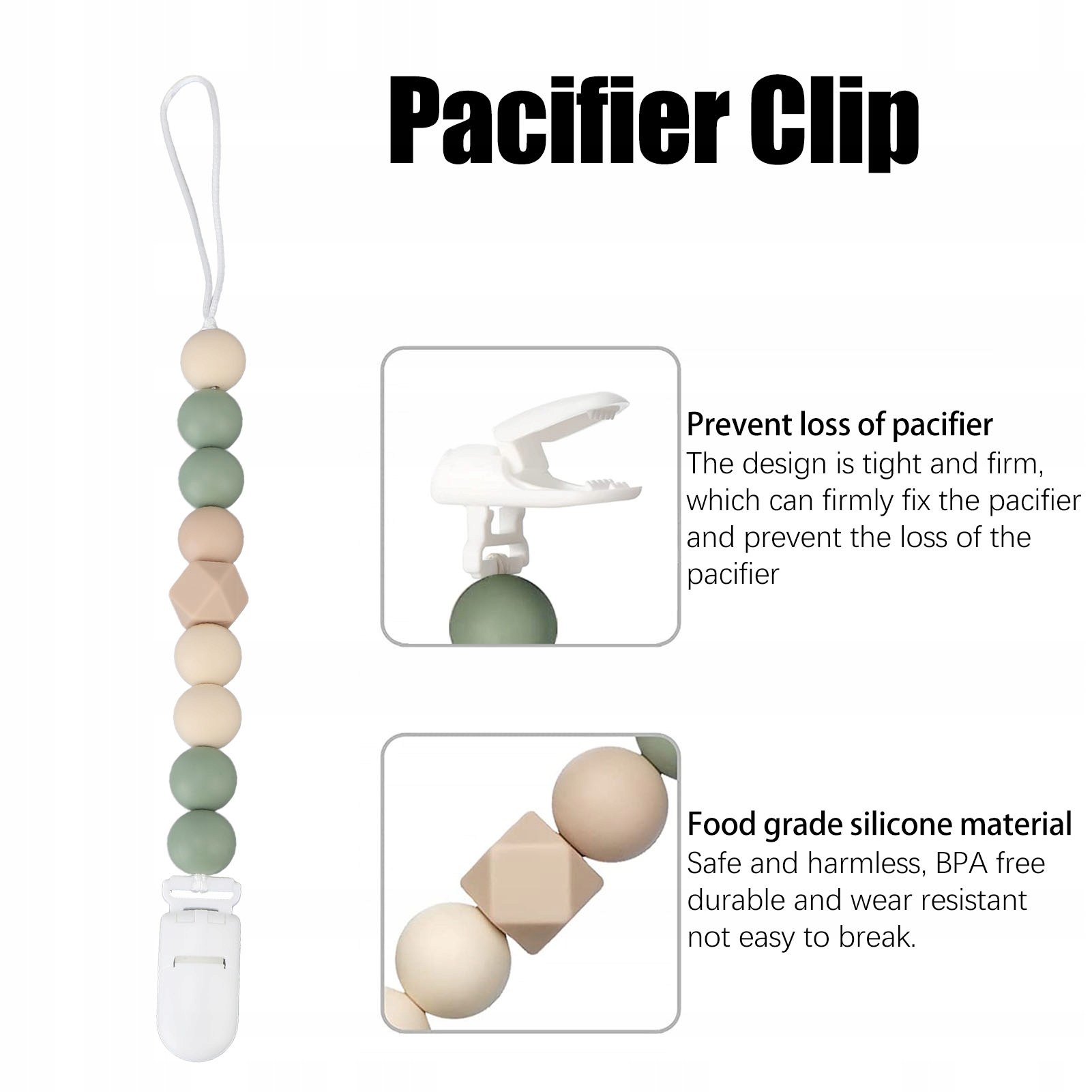 Функція: 1. Силікон з класом їжі: силіконові пустушки виготовлені з силіконового матеріалу з їжі, безпечного та нешкідливого, придатного для жування дитини. Міцний і стійкий до зносу може використовуватися протягом тривалого часу.