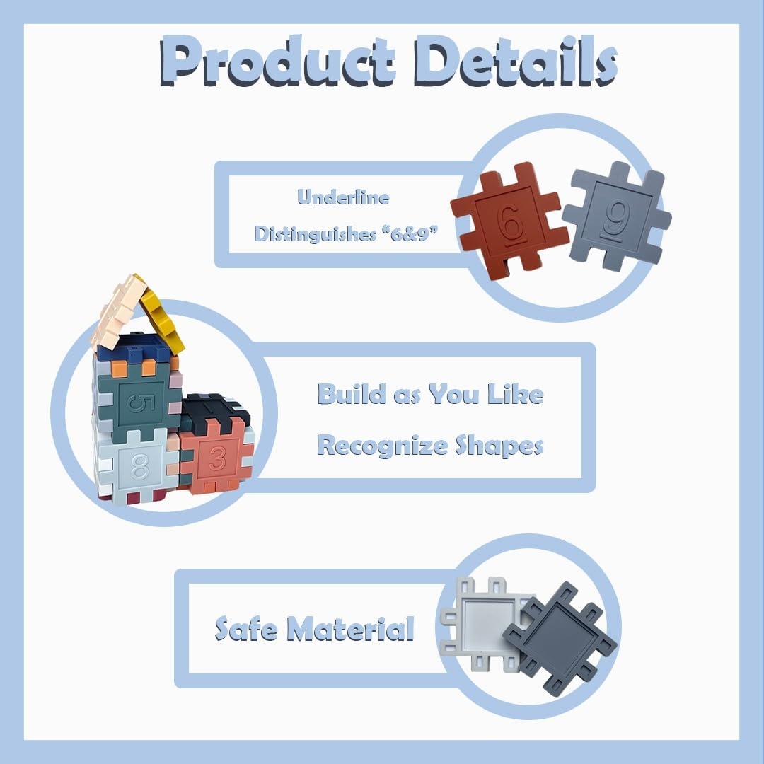 KYKEZ 16 силіконових конструкторів для дітей - кубики для малюків і дітей - сенсорна іграшка Монтессорі для дітей віком від 2 років (цифри 1-9, символи)
