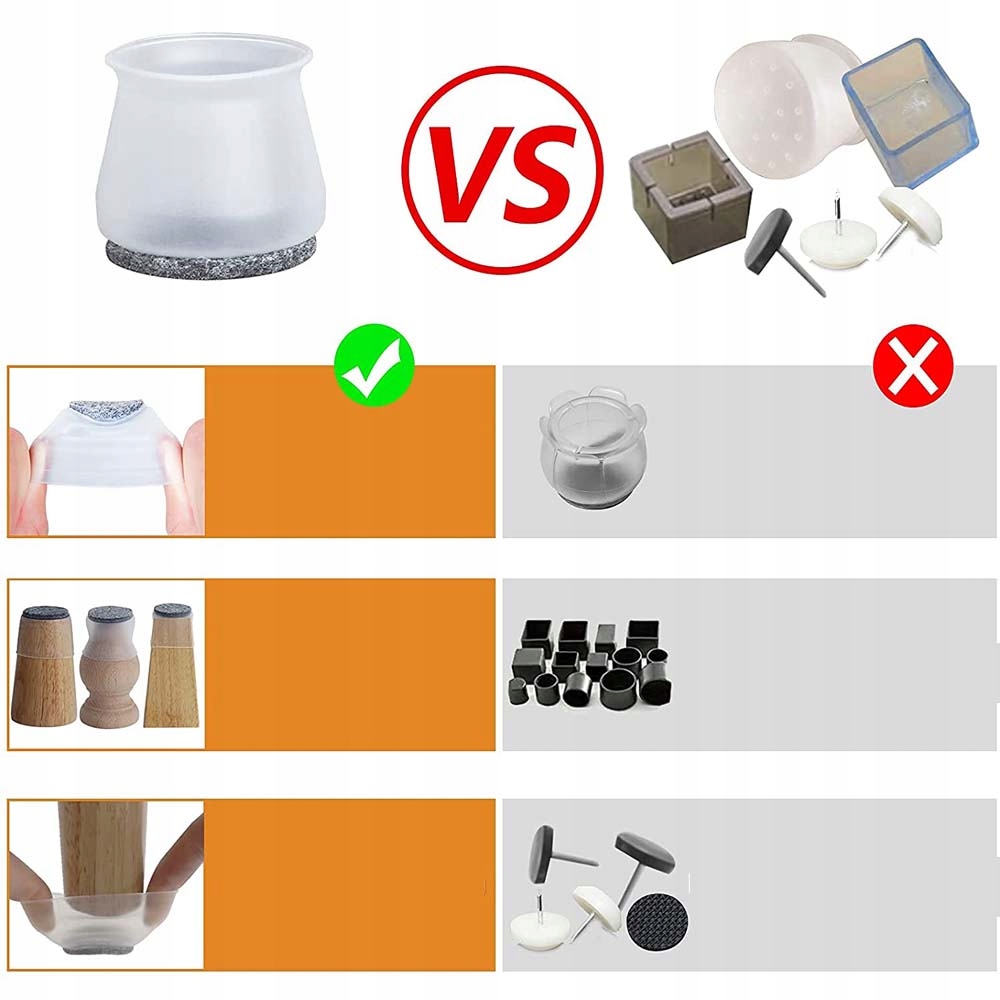 ✅ Широк, що використовуються для листяних порід, бамбука, ламінату, плитки тощо, гладкі підлоги, а не для цементу та іншої дорожньої підлоги. 24-40 мм (0,94–1,57 дюйма), діаметр діаметра круглої ноги: 35–45 мм (1,45-1,77 дюйма), ланцюг: 90–160 мм (3,54–6,3 дюйма)