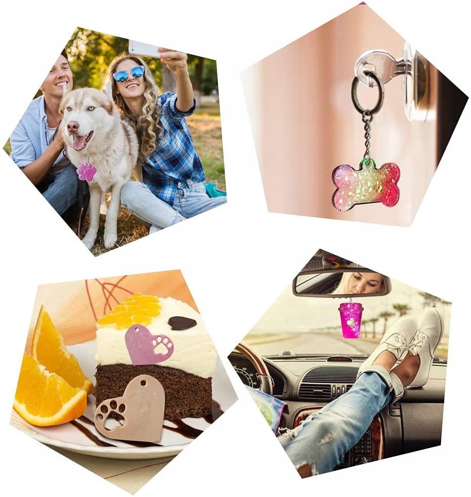 - ПАКЕТ: ви отримаєте 1 форму для чашки, 1 форму для лапи ведмедя, 2 різні форми для сердечок, 2 різні розміри собачих кісток і 10 брелоків.