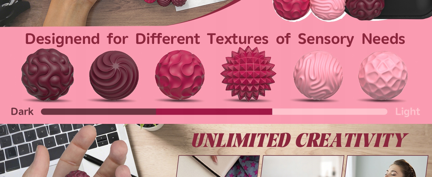 - Ці магнітні кульки мають силіконову поверхню з шістьма різними текстурами.