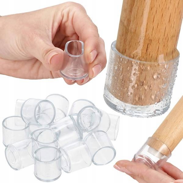 Силіконові накидки на ніжки стільців ідеально підходять для кухні, вітальні або тераси. Ми виготовили їх із міцного та гнучкого силікону, який ідеально захистить підлогу від подряпин, спричинених рухомими меблями. Кепки прозорі, тому після надягання вони будуть практично непомітні. Перевага накладок в тому, що вони пригнічують неприємні для слуху звуки. З цієї причини насадки стануть в нагоді в дитячих садках, де діти часто переміщують стільці. Також варто поставити їх на ніжки стільців в ресторанах, барах і готелях. Силіконові захисні чохли, на відміну від фетрових, не потребують використання клею. Крім того, до них не прилипає пил і волосся. Якщо вони забрудниться, просто промийте їх. Матеріал, який використовується при виготовленні - ПВХ водонепроникний і водонепроникний.