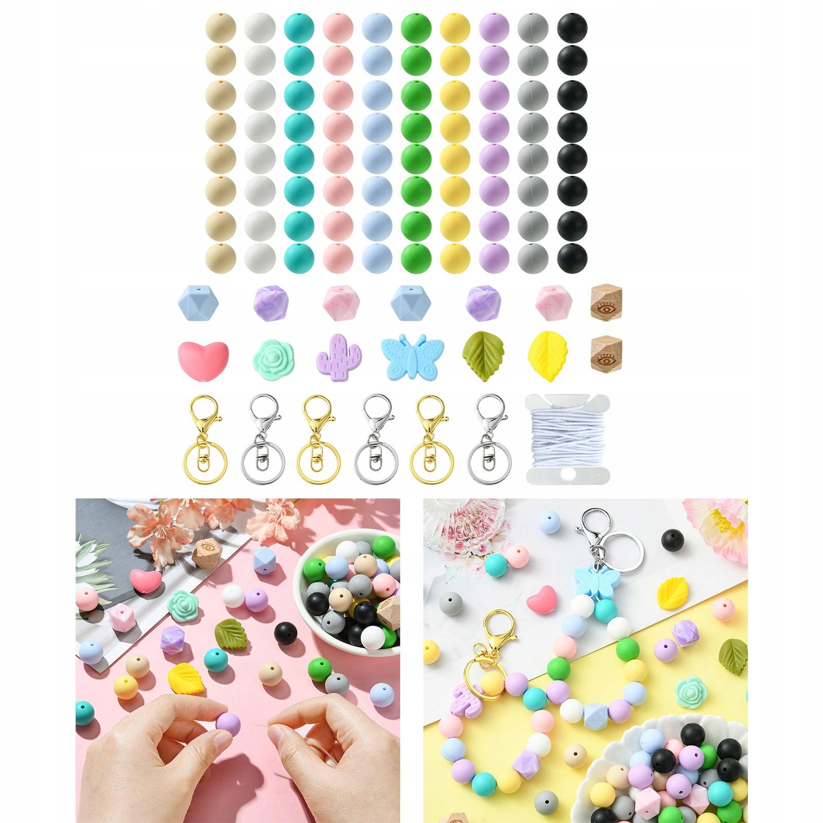 [DIY різними]: встановлено для виготовлення силіконових намистин для ключових кілець або допоможе вам зробити багато різних типів браслетів, кольє або декора Keychains