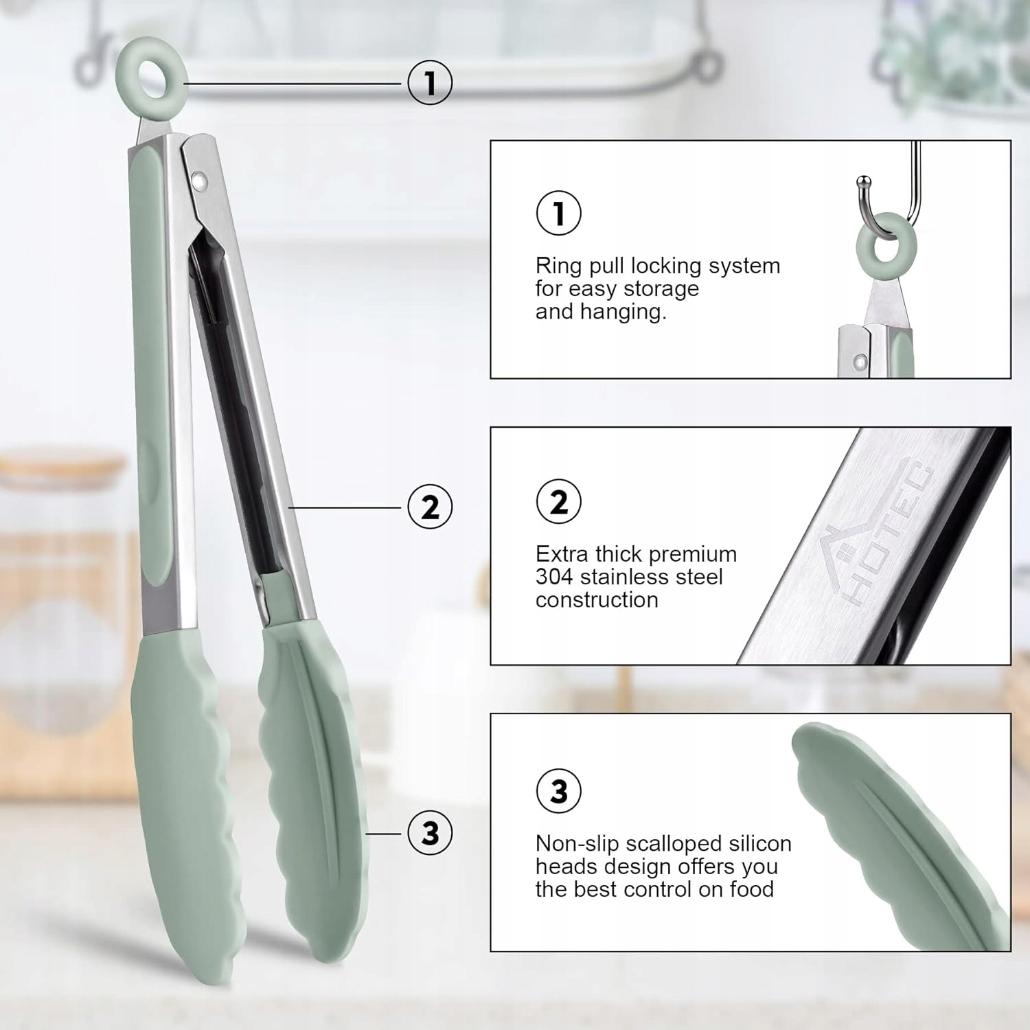 - Цей практичний набір із двох силіконових щипців із нержавіючої сталі є обов’язковим для кожної сучасної кухні.