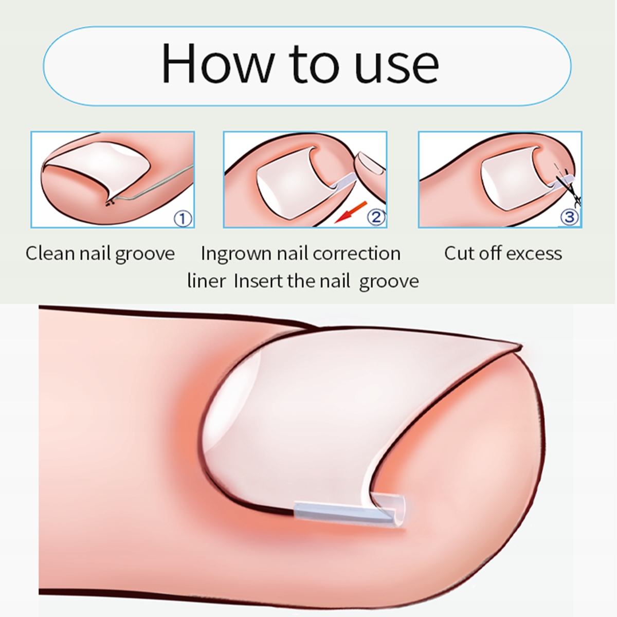 Закрийте край цвяха та заповніть шов нігтя гнучким силіконовим матеріалом, щоб ніготь більше не застрягав у плоті.