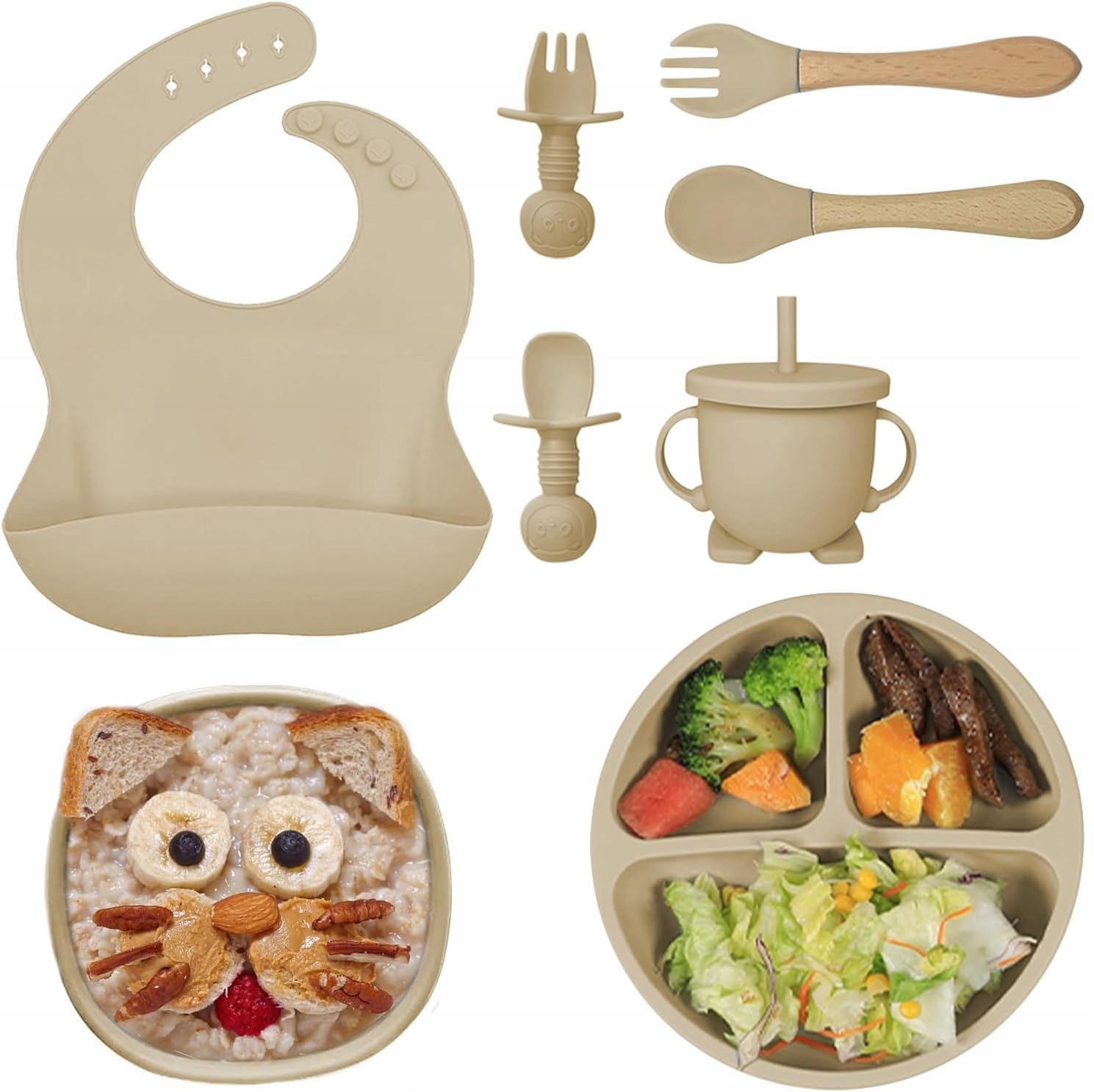 🍛🍛🍛【 8-частинний набір】 Набір посуду для дітей містить 1 регульований біббон для малюка, 1 тарілка з присмоктувальною чашкою, 1 силіконовою чашою для немовлят з присосною чашкою, 1 силіконовою чашкою, що п’є в ручці, 2 силіконовою ложкою для торгів для торгів. Набір тарілок для дітей - це чудовий подарунок для вашої дитини, яка зробить їжу смачнішою, а дитина зможе їсти наодинці.