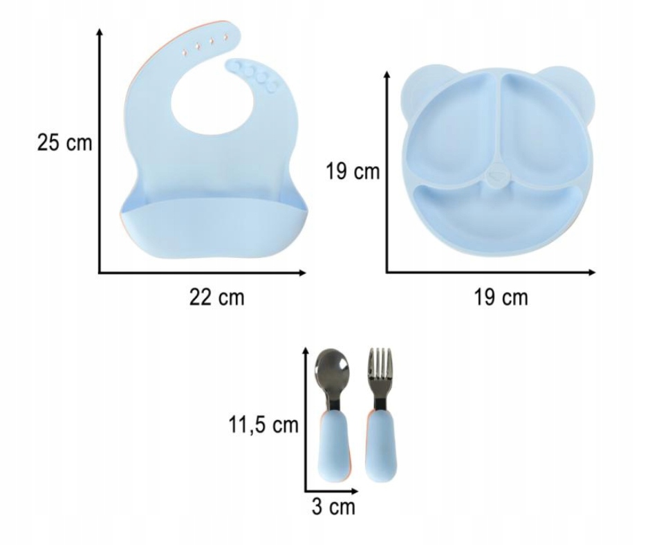 Ми представляємо синій набір силіконових судин для дітей - ідеальний набір страв, розроблених спеціально для невеликих гурметів! Набір поєднує функціональність із чарівним дизайном, допомагаючи дитині вчитися їсти самостійно.