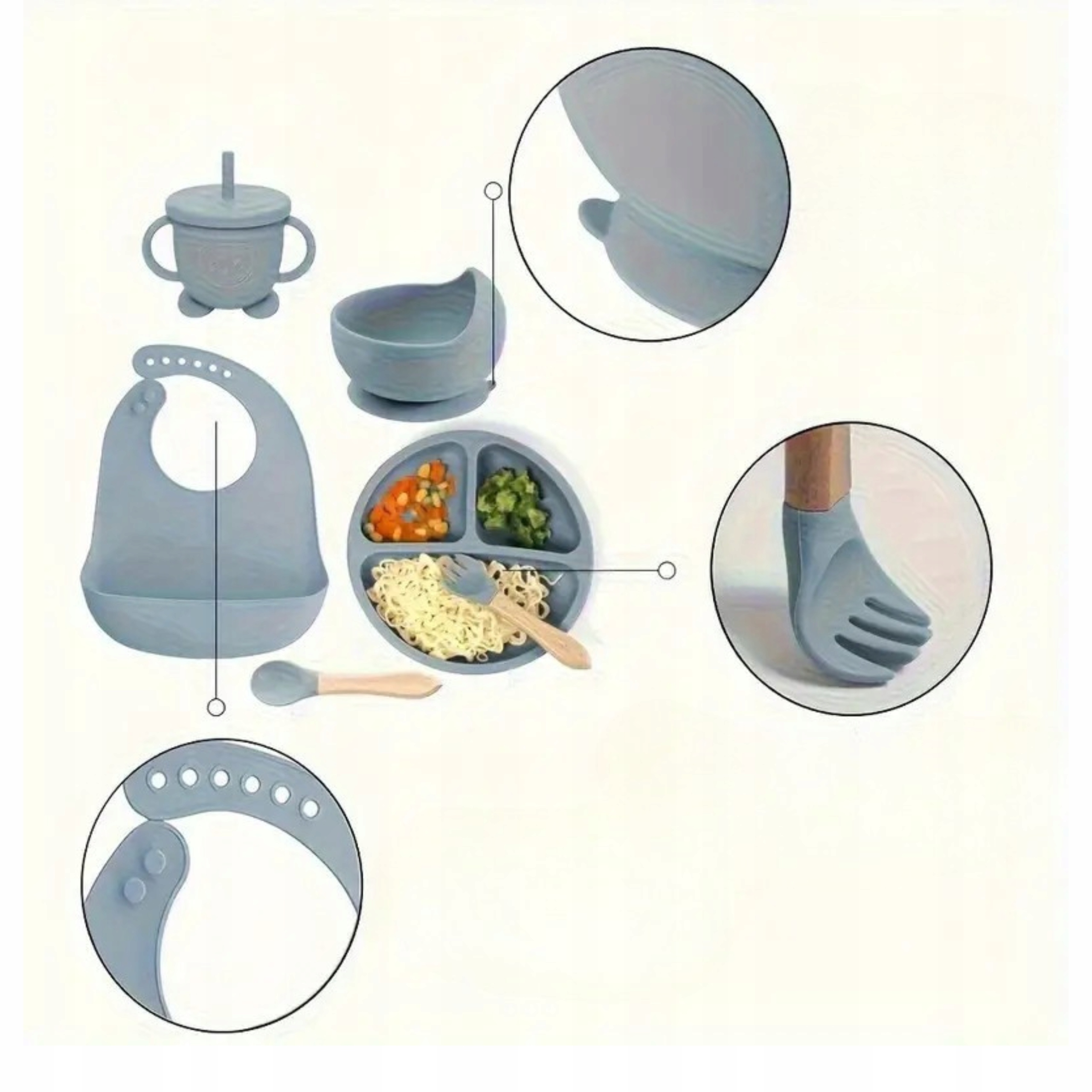 Силіконові страви ⭐ для дітей, немовлята ⭐ безпечний ⭐ безпечний ⭐ з присольною чашкою ⭐ набір 7 елементів ⭐ 4 кольорів для вибору