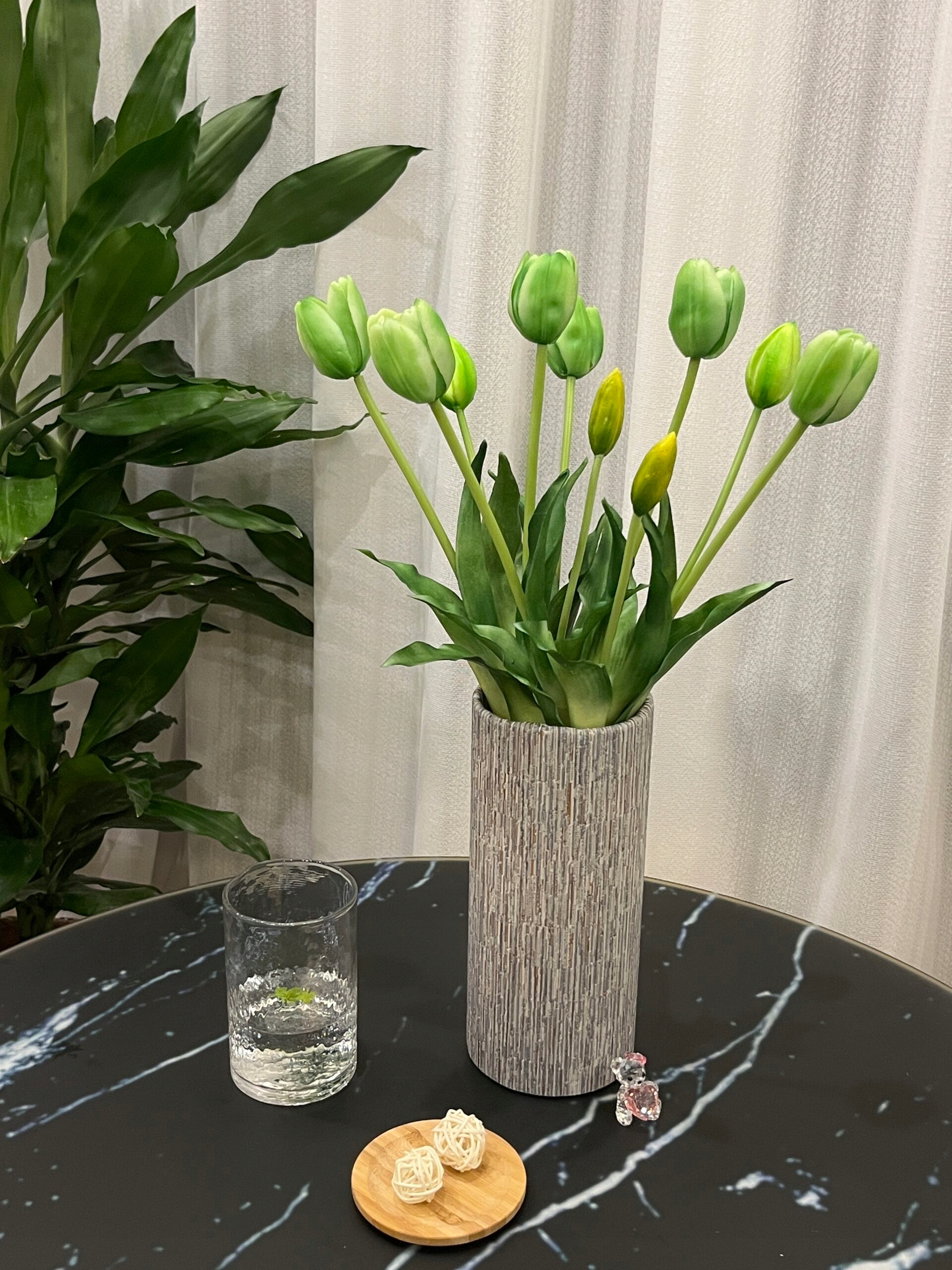 Силіконові тюльпани виглядають практично реалістично, тому їх найкраще використовувати просто як прикрасу. Вони дуже приємні на дотик. Вони будуть красиво виглядати в скляній вазі, поставленій посередині комода, столу або на підвіконні. Їх найбільшою перевагою є стійкість до пошкоджень. Крім того, вони практично не потребують догляду. Щоб підкреслити їх автентичність, можна налити в скляну посудину воду. З квітами нічого не трапиться, а тюльпани виглядатимуть як щойно зібрані
