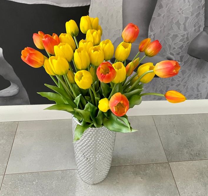 Силіконові тюльпани – це рішення, яке найчастіше використовують клієнти. Все це завдяки високому рівню автентичності продукту, його високій якості, привабливій ціні, але, перш за все, бездоганному зовнішньому вигляду квітів. Традиційним використанням такого роду виробів є їх розміщення в декоративній вазі в центральному місці даної кімнати. Однак гілочки можна легко відокремити і використовувати окремо. Букети можна комбінувати в ефектні композиції. Екземпляри тюльпанів чудово підійдуть як подарунок коханій людині, наприклад, на ювілей, день народження або навіть під час побачення.
