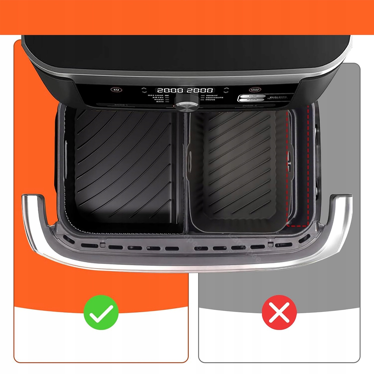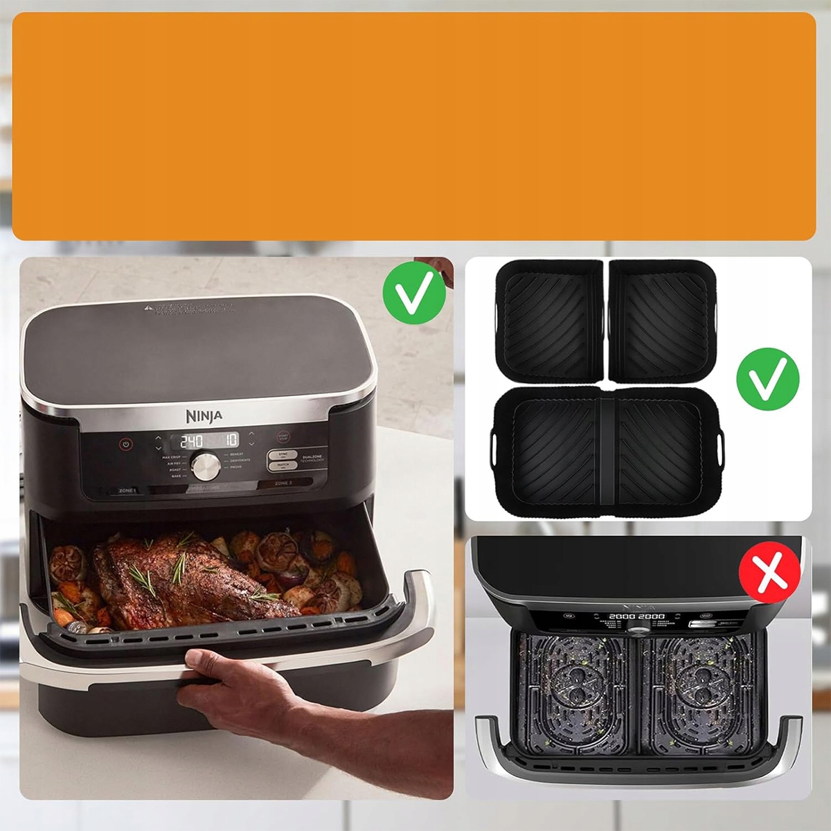 Наші аксесуари для аерофритюрниці Ninja розроблені спеціально для аерофритюрниці Ninja Foodi Flexdrawer 10,4 л AF500DE. У комплект входять 2 силіконових вкладиші об'ємом 5,2 л і 1 вставка об'ємом 10,4 л. Вони пропонують два варіанти: можна приготувати дві різні страви окремо або велику порцію відразу.