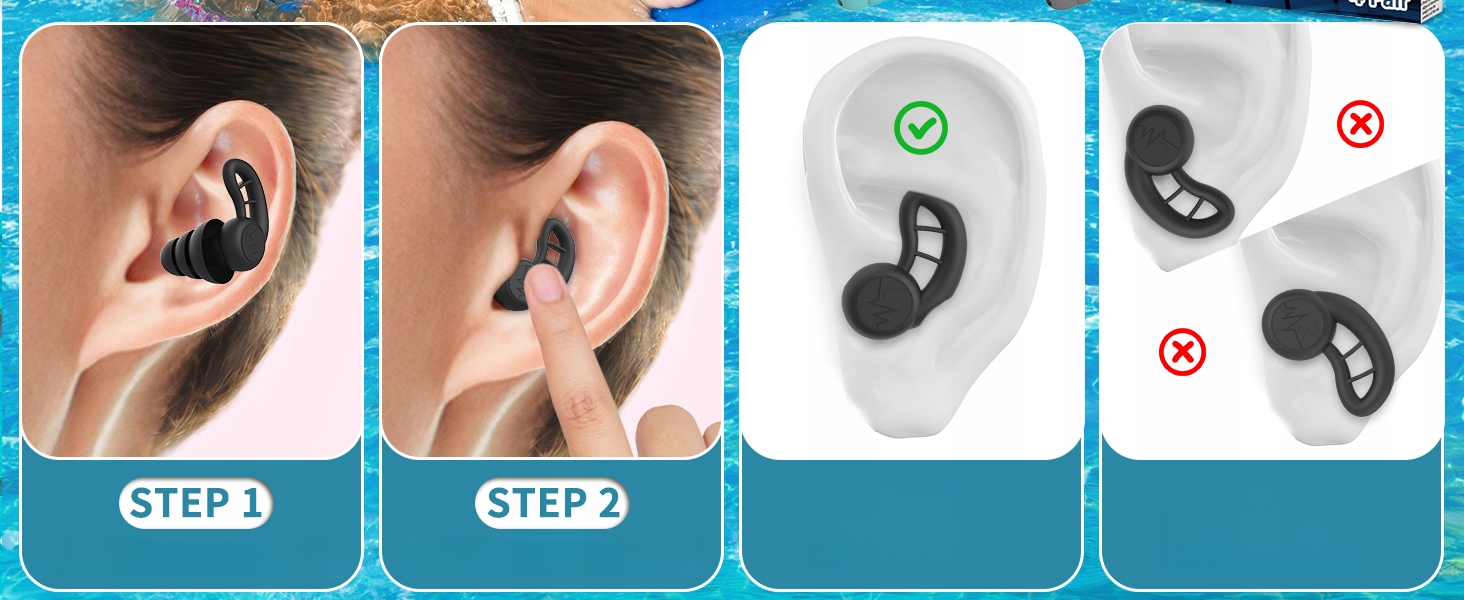 - Адапти до вушного каналу, запобігаючи воді та спричиняючи дискомфорт