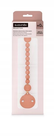 Кліп був зроблений із безпечного, медичного силікону у вигляді ланцюга з комбінованими намистинами, що запобігає ковтанням і задушенню. Втрата силікону, що забезпечує сенсорний досвід, підтримуючи його розвиток з перших моментів.
